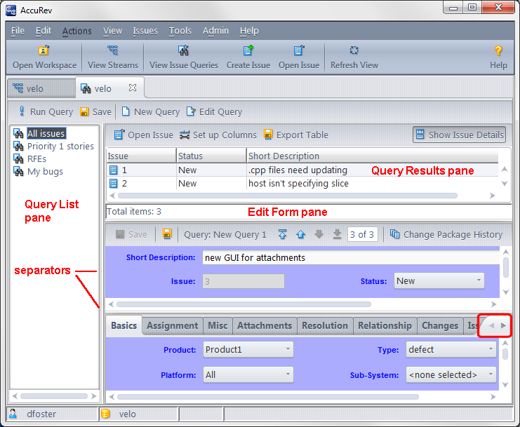 • InvokeShow Issue Details to make an Issue form pane appear within the Queries tab.