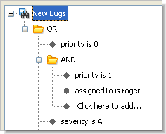 <value> parts of a simple clause. As you "fill in the blanks" to create simple clauses, you'll notice that AccuWork allocates new "Click here to add ..." placeholders, so that one is always available at each level of the query.