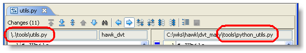 Vertical Layout at the right side of the toolbar to arrange the panes above-and-below.) We'll call them the "before version" (displayed on the left, or above) and the "after version". The element pathname and the version-IDs are displayed above the versions' contents.