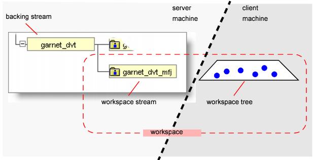 • the workspace’s backing stream, a “data switchboard” that organizes the sharing of files’ changes with other members of your development team