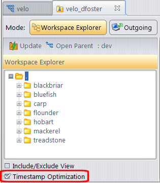 Local, client-based TSO uses cached server information that is stored on the client. This approach to timestamp optimization ensures that all modified files in the workspace are correctly identified (even if they have an older timestamp and have been copied into the workspace from an external directory), while ensuring good performance.
