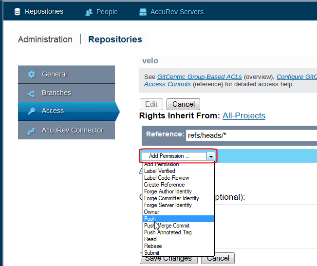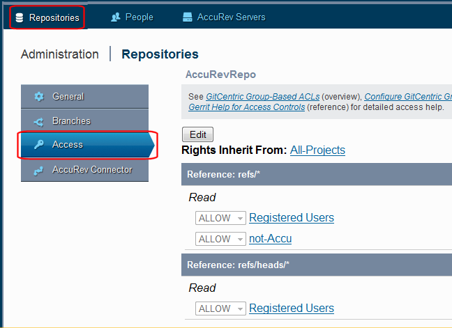Use the following general procedure for settings ACLs on your repos.
