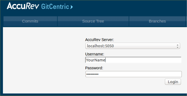 http://<servername:port>You will see the following log-in screen and the GitCentric menus will be displayed, although some will be disabled until you log in.
