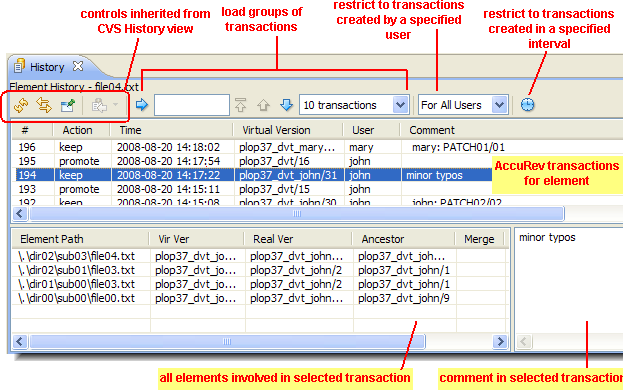 - Review the transactions to find the one that contains the changes you want to patch into your version of the file. File versions