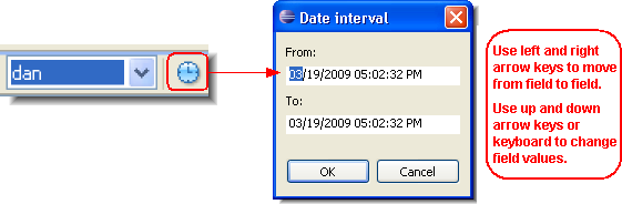To scroll to the next or previous set of transactions, use the or button. The button loads the first (most recent) set of