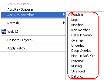 You can select one or more elements in this window and right-click to display the AccuRev context menu and perform any valid AccuRev command. This makes it easy to perform such operations as: