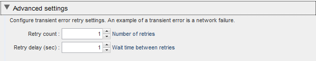 Increase the values in the Retry count and Retry delay (sec) fields as needed.