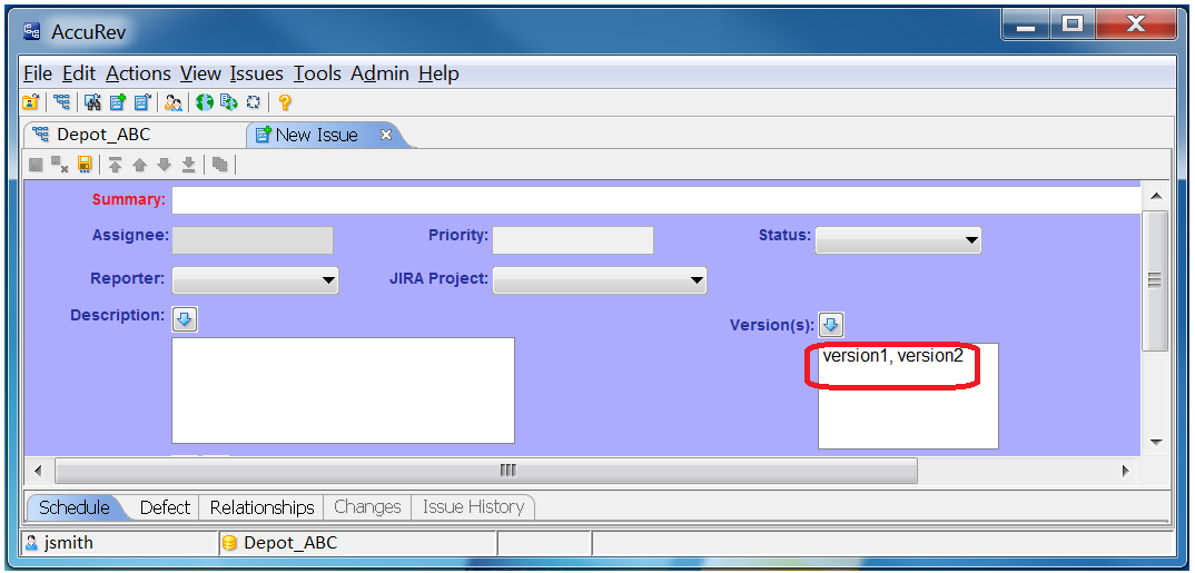 If the field is a text field and the version is a combination of more than one version, the end user should be instructed to enter the combined versions as comma separated. For example, when entering the combined versions in AccuWork, the user types: version1, version2 as shown in the following example.