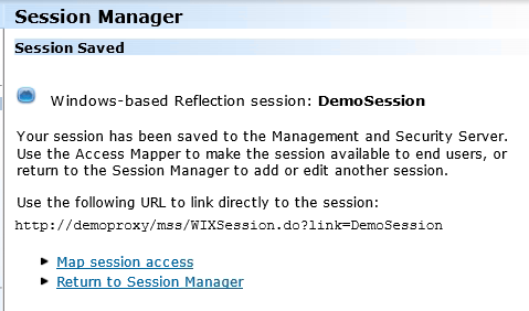 You can create and manage Reflection sessions using the Management and Security Server Session Manager, which is available from the Administrative WebStation. Sessions that you create in this way are saved to the server and can be made available to users from the server and modified at any time.