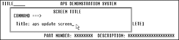 Start this procedure where the last one ended -- in the APS Screen Painter. When the Screen Painter first appears, it is blank except for a line indicating the Command field.