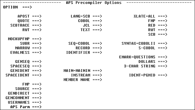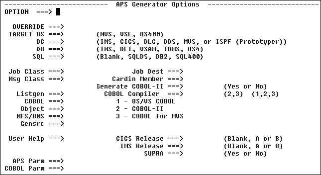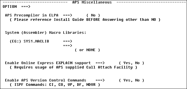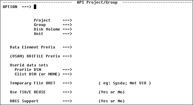 To prepare for installation, first gather site and project-specific data. Using the screen representations as your guide, enter your site and project-specific data on the tables that follow. You supply this data during the installation procedure to tailor the JCL and the logon PROC that invokes APS.