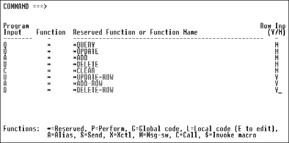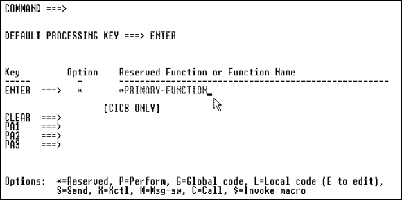 Note: The Enter key is the default function processing key. It causes your program to test the function code that the end user enters, and execute the function. To override the Enter key as the default function processing key, perform step 15.