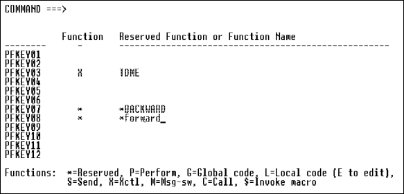 Note: You can specify any combination of execution methods. For example, you can assign the E(xit) function to the F3 key, and other functions to function codes.