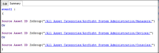 Click the Summary tab to view the detail of the Boolean logic. This shows that the assets are OR’ed together.