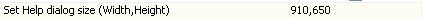 The Help display window defaults to width of 910 x length of 650 pixels.