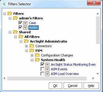 After you add filters to this tab, these filters become the user group's enforced filters that are enforced at run time. The filters you add can be ArcSight-provided filters or filters you created, based on individual groups’ requirements.
