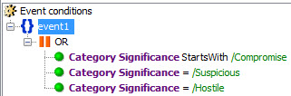 Evaluating event conditions is one of the most resource-intensive operation in event processing. ESM evaluates event conditions in the sequence they appear on the filter’s Filter tab. The following example shows event conditions: