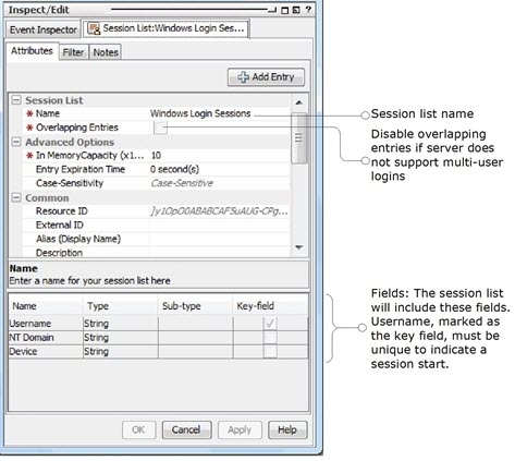 Disabled (leave unchecked) This example assumes that the Windows server we are monitoring does not support multiple-user logins, which is why we leave Overlapping Entries unchecked. |