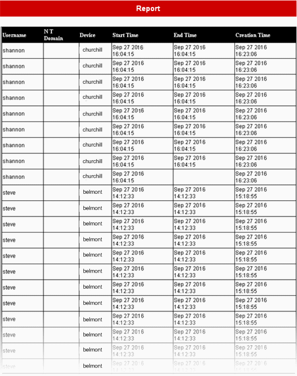 Following is an example of an HTML version of the Windows Login Sessions report.