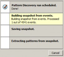 In the Viewer panel, the system processes the snapshot request and shows each process as the Pattern Discovery engine runs: