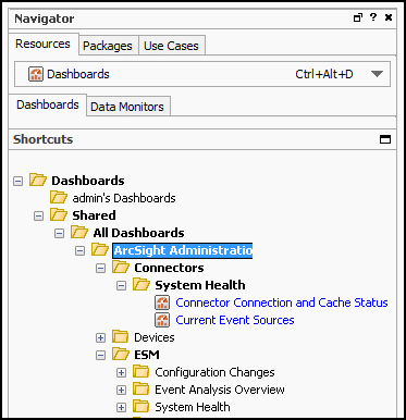 The Navigator panel showing the Dashboards resource tree