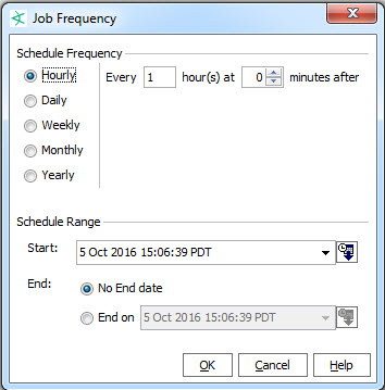 In the Summary field at the bottom, select Click here to set up schedule frequency. This activates the Job Frequency dialog.