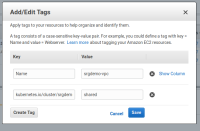 kubernetes.io/cluster/<cluster name>and the valueshared. - Click Save.