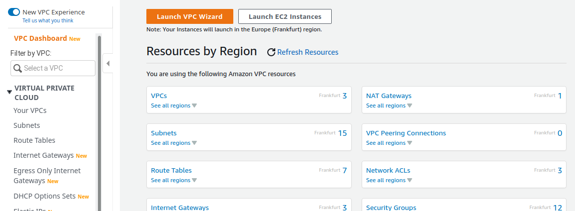 - Using the Find Services search tool, locate and browse to the VPC dashboard.