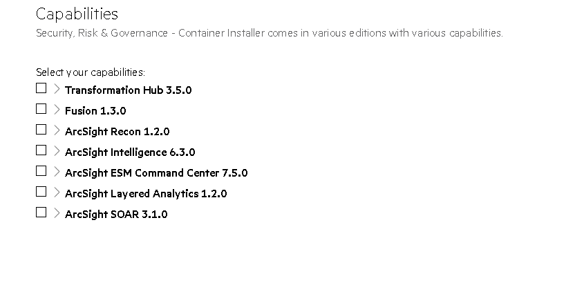 Other products might require Transformation Hub or other capabilities as prerequisites. You can view any such requirements in the pull-down text associated with the capability.