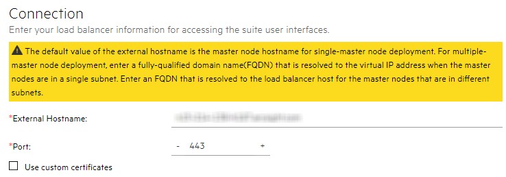 - In External Hostname, the deployment populates an external hostname automatically from either: