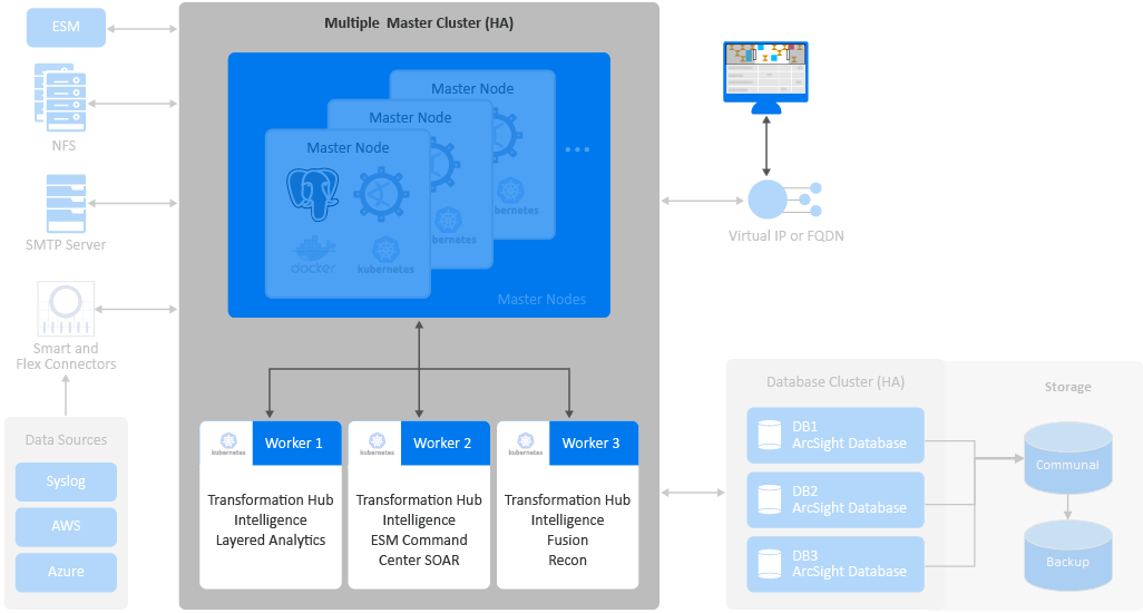 For a complete security, user, and entity solution, you might also need to integrate software and components that are not deployed within the Platform. For example, your solution might need a database for data storage and Micro Focus ArcSight SmartConnectors for data collection from various data sources.