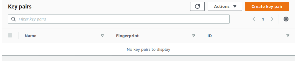 - Record the keypair name and keypair fingerprint to the AWS worksheet.