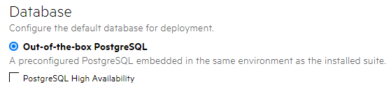 - Ensure the PostgreSQL High Availability box is unselected. This database is not used by ArcSight capabilities.