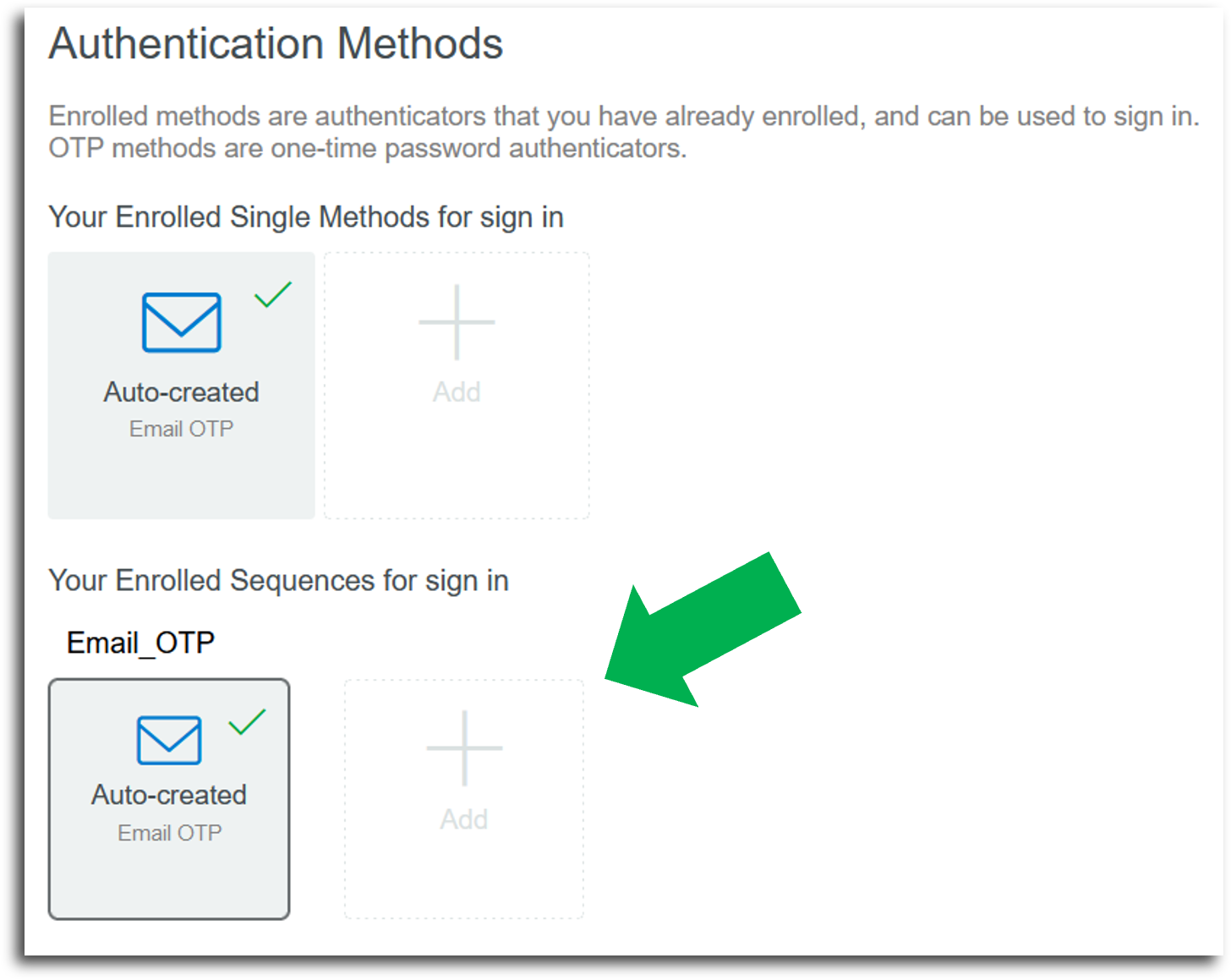 Under Your Enrolled Sequences for sign in on the Authentication Methods page, click .
