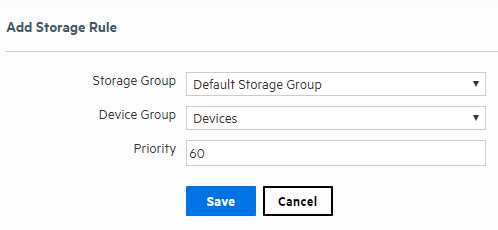 Before you add a storage rule, make sure that the storage group to which you want to store the events and the device group that contains the devices whose events you want to store exist. For information on how to create device groups, see Device Groups.