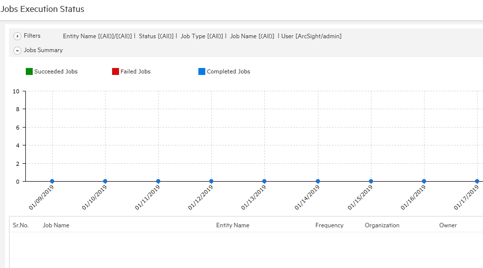 By default, data of jobs executed in the last 7 days is displayed. For example, if today is June 8 2018, data of jobs having execution date between June 1, 2018 and June 8, 2018 will be displayed.