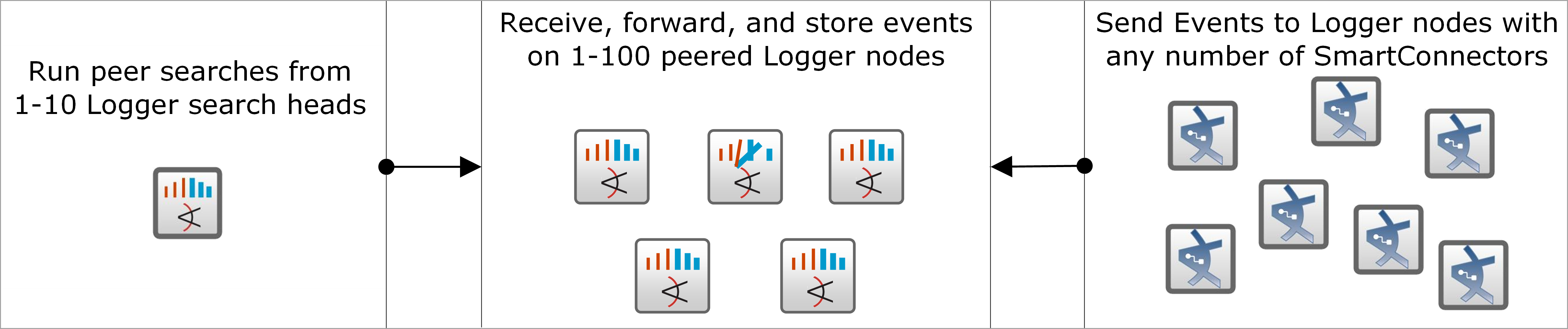 A node is any peered Logger used for receiving, storing, and forwarding events. A search head is a peered Logger that is only used for searching. Search heads do not forward, receive, or store events. To take advantage of search heads, you must set up your architecture so that no data is sent to the Loggers that will be used as the search heads.