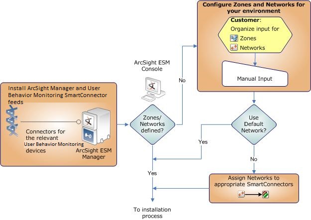- Model your network to include UBM devices. Verify that zones and networks are defined for your organization and that networks are assigned to the connectors reporting events relative to UBM into ESM. Learn more about the ArcSight network modeling process in the ESM 101 Guide. Find instructions for how to configure zones and networks in the ArcSight Console User’s Guide.