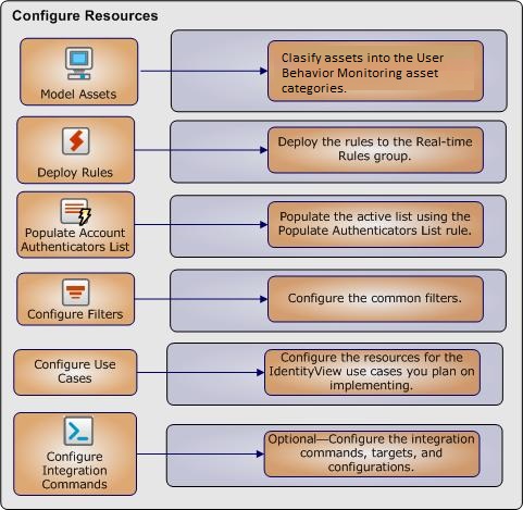 Additional configuration might be needed for the individual resources associated with a use case. For more information, see ArcSight User Behavior Monitoring Use Cases.
