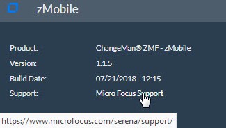 The next option on the Primary Menu, ’About’, will display a screen with the Product, Version, Build Date, and a link to Micro Focus Support: