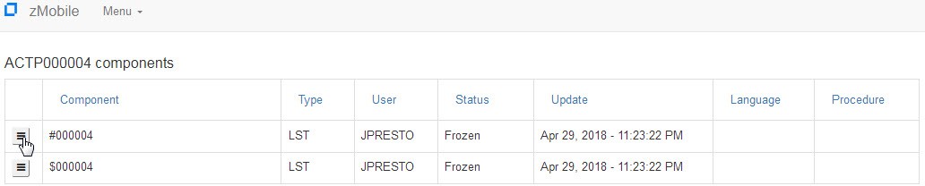 The Menu button on the left allows you to browse the component or look at the history.