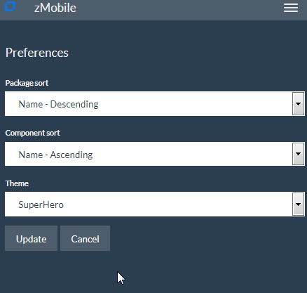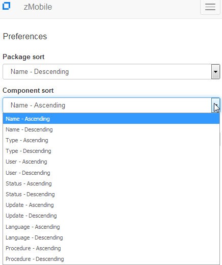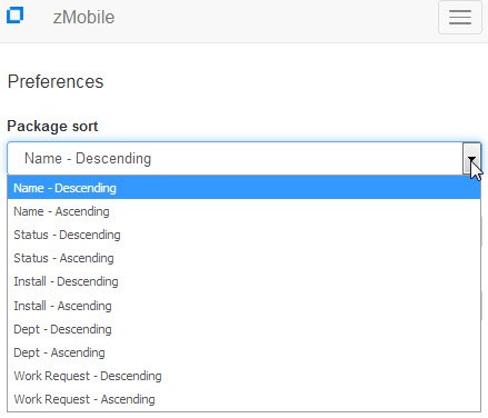 The next option on the Primary Menu allows you to change your zMobile Preferences: