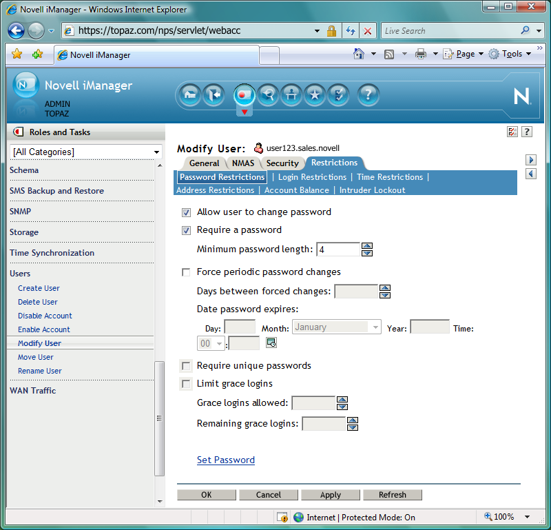Login restrictions are limitations you set on user accounts in order to control access to the network. These restrictions can be set in Novell iManager for each user and include the following: