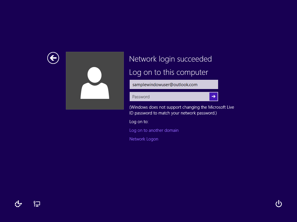 Once your Live ID is added to the PC and after a successful Network login, in the Log on to this computer screen, enter your Live ID username and password.