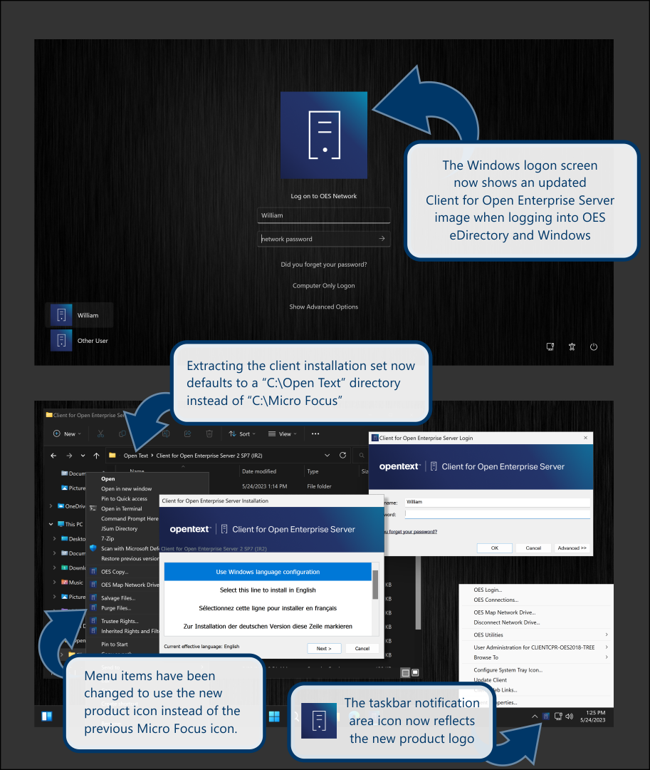 Micro Focus is now part of OpenText. Products across the portfolio are now being rebranded to reflect OpenText or a more appropriate name. This corporate change impacts the name of products and components, user interfaces, logos, and so on. The client name remains same, “Client for Open Enterprise Server”.