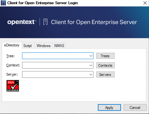 On the eDirectory tab, specify the tree name, tree context, and the server name.