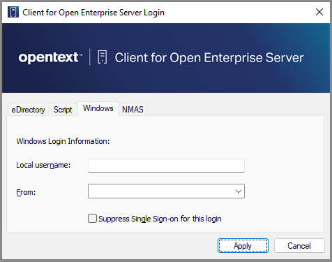 On the Windows login page, click OES Logon, then enter the eDirectory user credentials that you want to link to the Windows user.