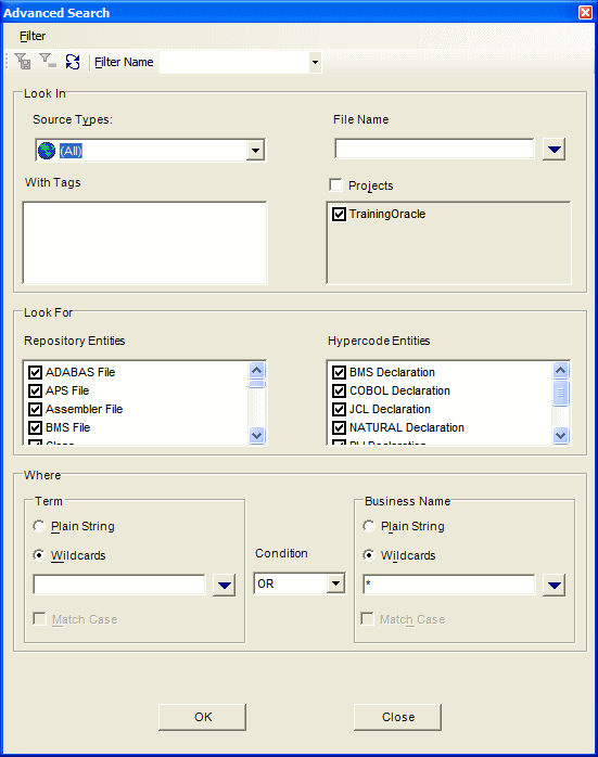• To create a new search filter, enter the name of the filter in the Filter Name combo box.