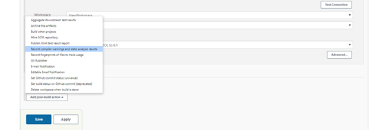 Post Build Action select