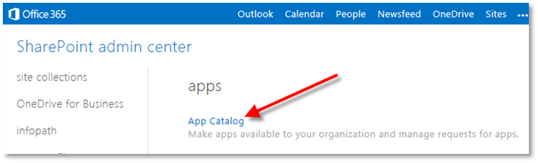 If you do not already have a corporate app catalog within your SharePoint content web application, then you need to create one. Understanding apps, and the general app architecture, is outside the scope of this document, but here are some basic steps to create an app catalog suitable for testing/proof-of-concept work.